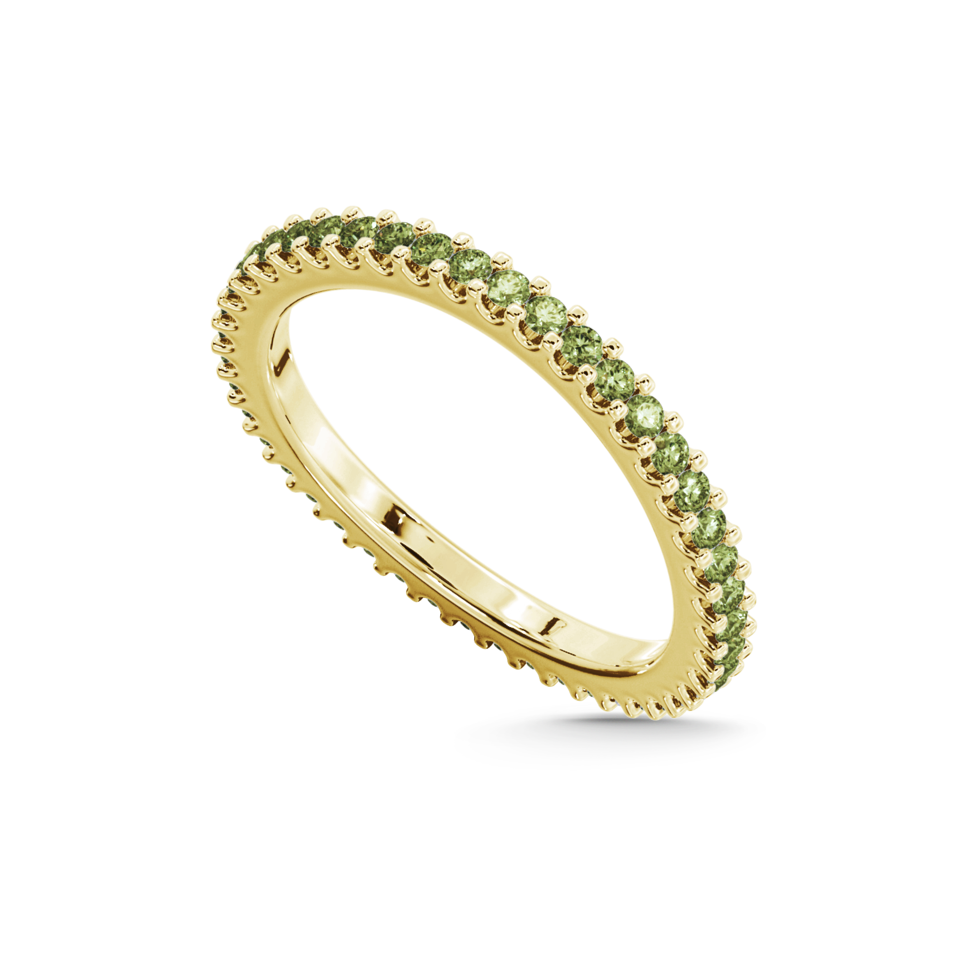 Eternal Love is a handcrafted eternity ring with 0.015 carat brilliant cut colored forest green diamonds. Wear it solo or pair it seamlessly with any eternity band or solitaire ring.
