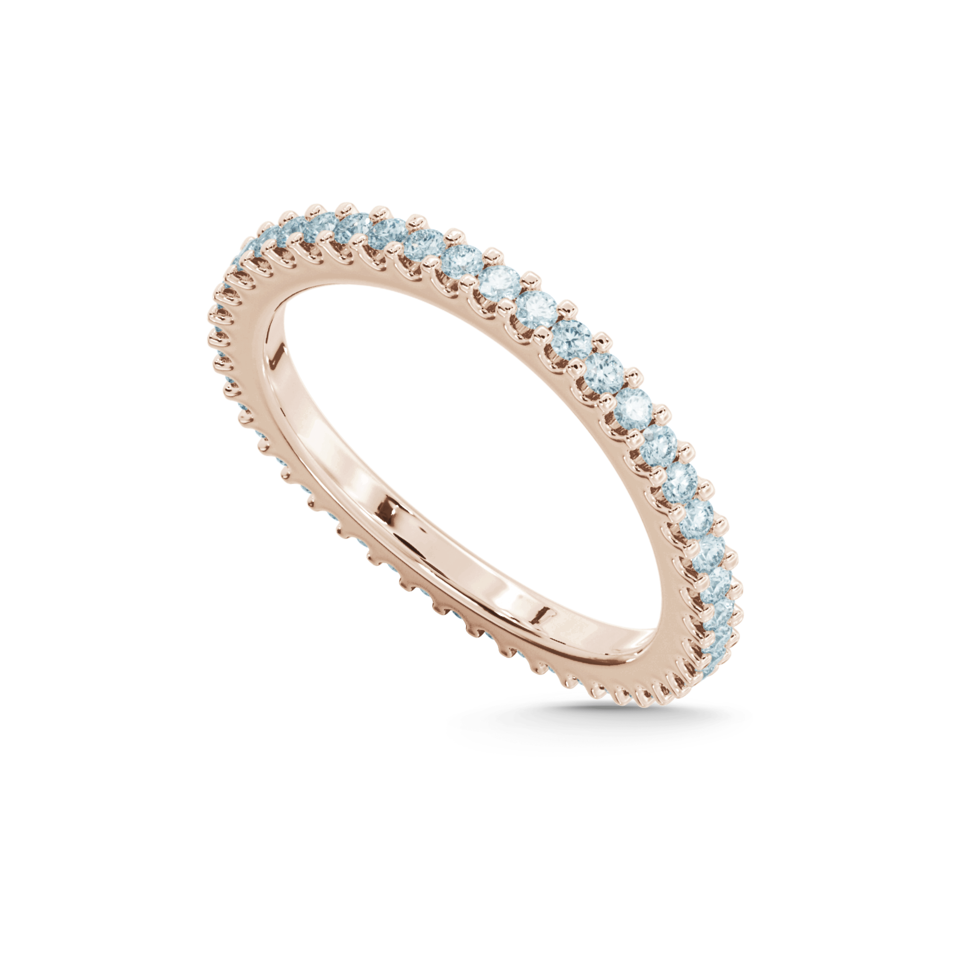 Eternal Love is a handcrafted eternity ring with 0.015 carat brilliant cut colored ice blue diamonds. Wear it solo or pair it seamlessly with any eternity band or solitaire ring.