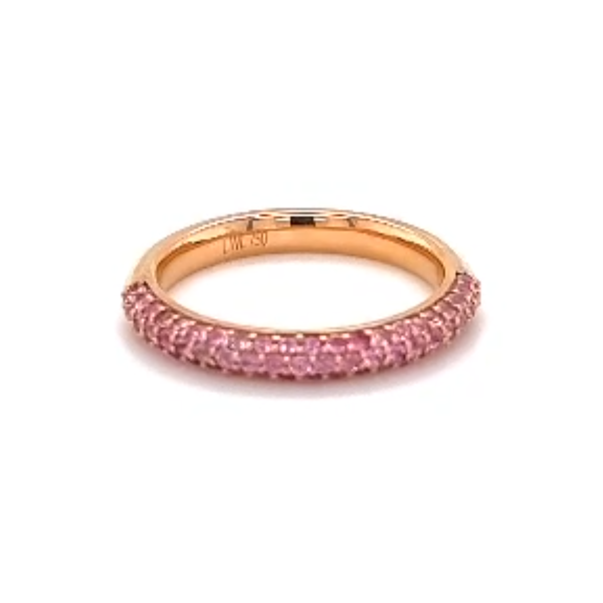 Forever and Ever is a handcrafted eternity ring featuring three rows of brilliant cut natural pink sapphires. This dazzling statement piece shines as brightly as the love it symbolizes and is perfect for wearing alone or stacking with other rings.