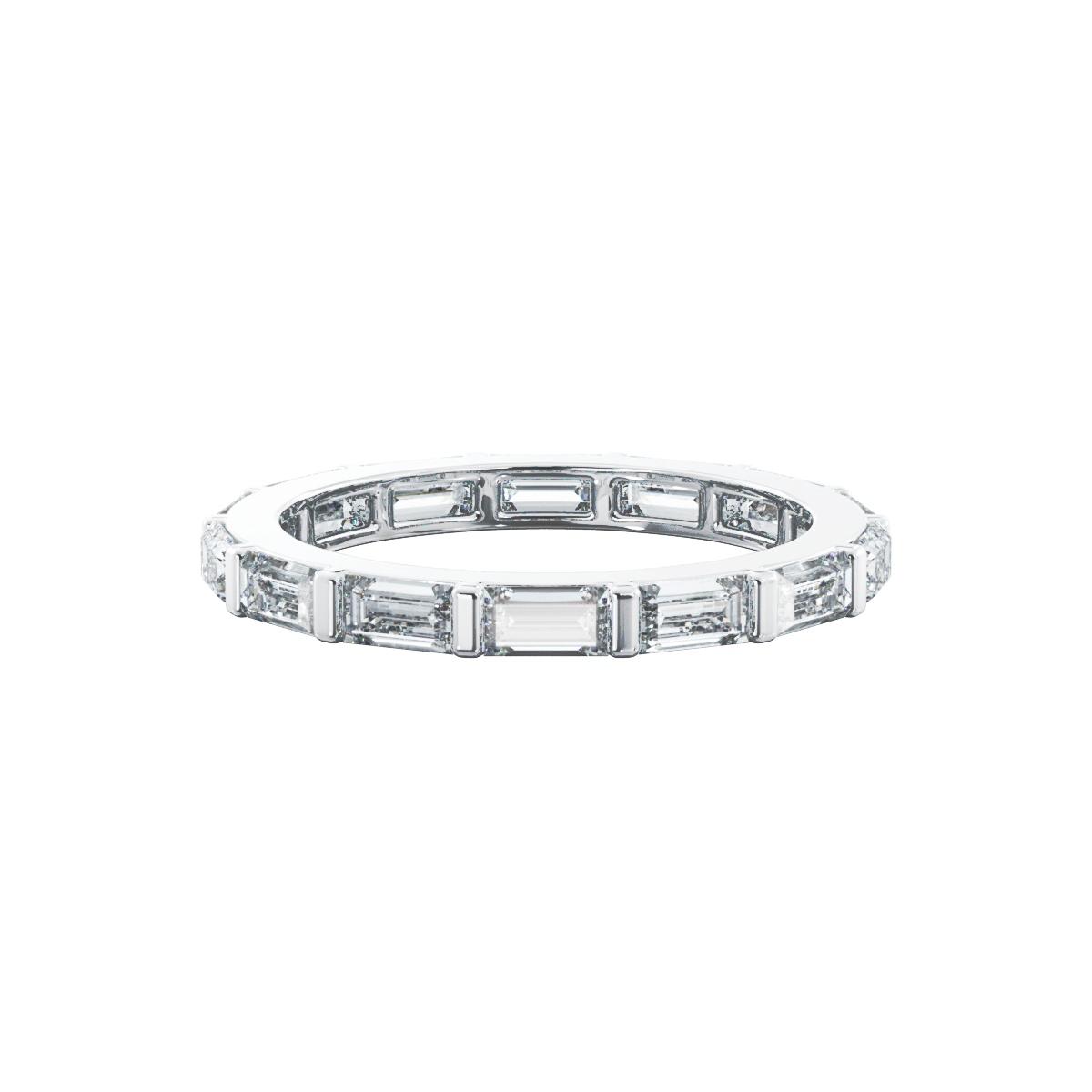 Passion is a handcrafted eternity ring featuring 0.011ct baguette cut diamonds set in a sleek design. This ring is a stunning piece on its own and pairs beautifully when stacked with other eternity bands or a solitaire ring.