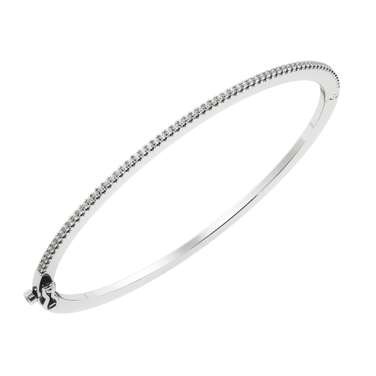 The Bangle is available as fully mounted or half mounted and in 18k yellow, rose, and white gold, as well as white gold with black rhodium. Available in platinum at an additional cost.