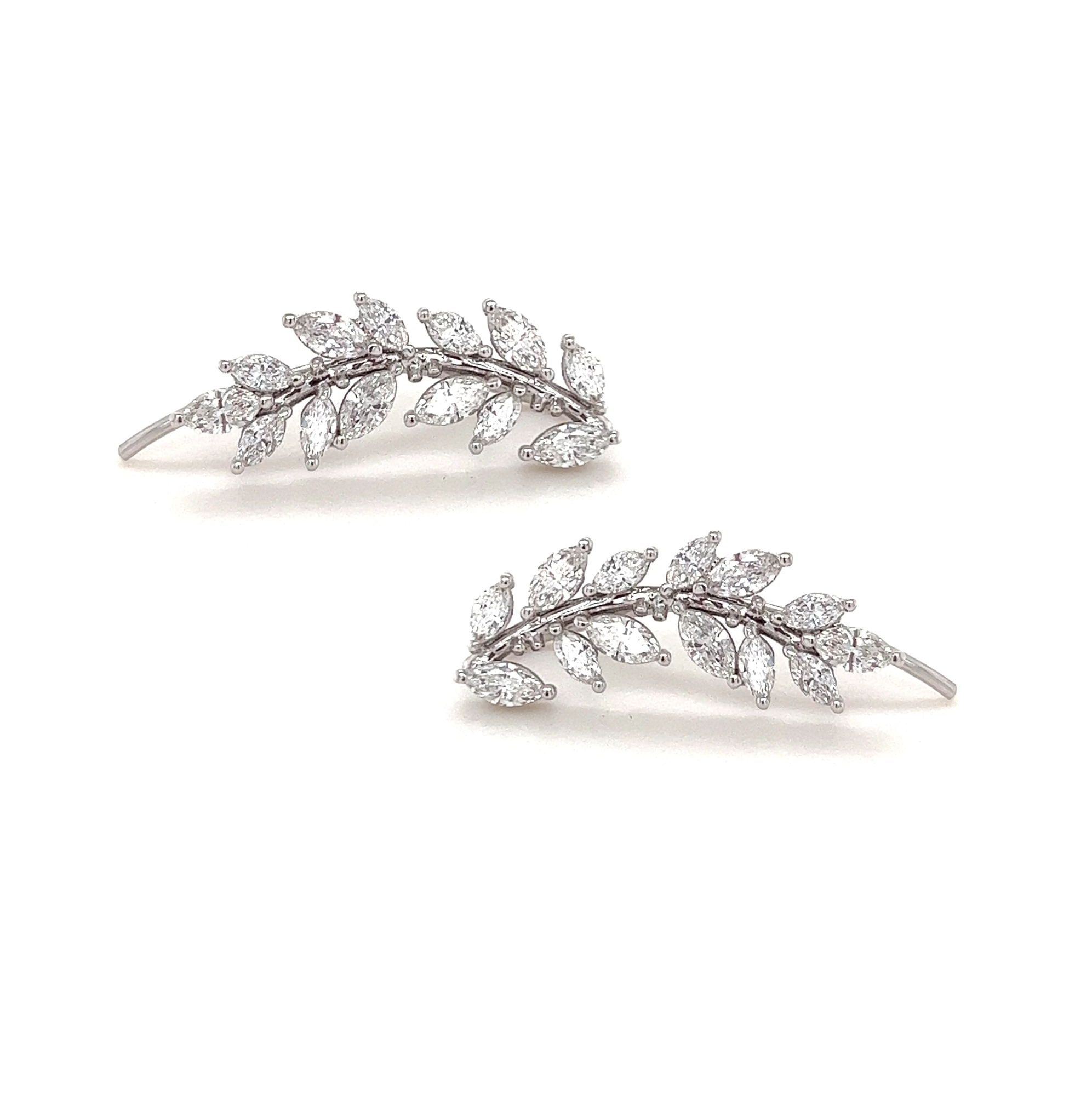 Liana is a pair of handcrafted earrings with marquise cut diamonds weighing 0.06—0.11ct each, totaling in 1.27ct per earring.