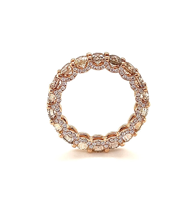 You and Me is a handcrafted eternity ring featuring round brilliant cut natural champagne diamonds of 0.25–0.30ct each, set in an elegant pavé band. This ring is bot sophisticated and enchanting with its multitude of diamonds.