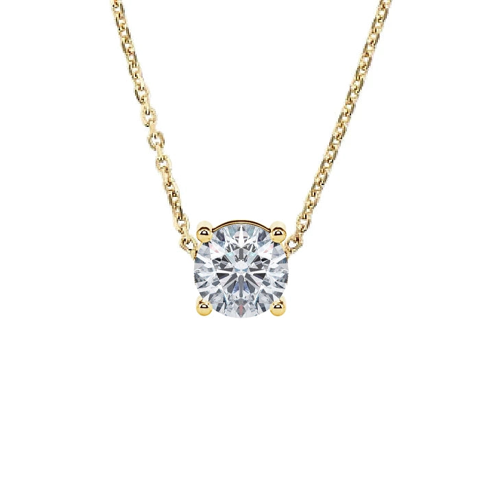 This delicate diamond necklace with a round brilliant cut diamond set in four 18k gold prongs is a beautiful piece of jewelry that you can wear and enjoy every day. The chain in 18k gold can be custom-made into different lengths to ensure that you get the perfect fit.