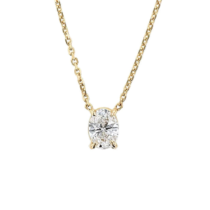 This solitaire necklace, featuring a 0.07—0.08ct white oval cut diamond, is a must have piece in every jewelry collection. The chain is available in different lengths: 38, 40, 42, 45, 50, and 55cm.