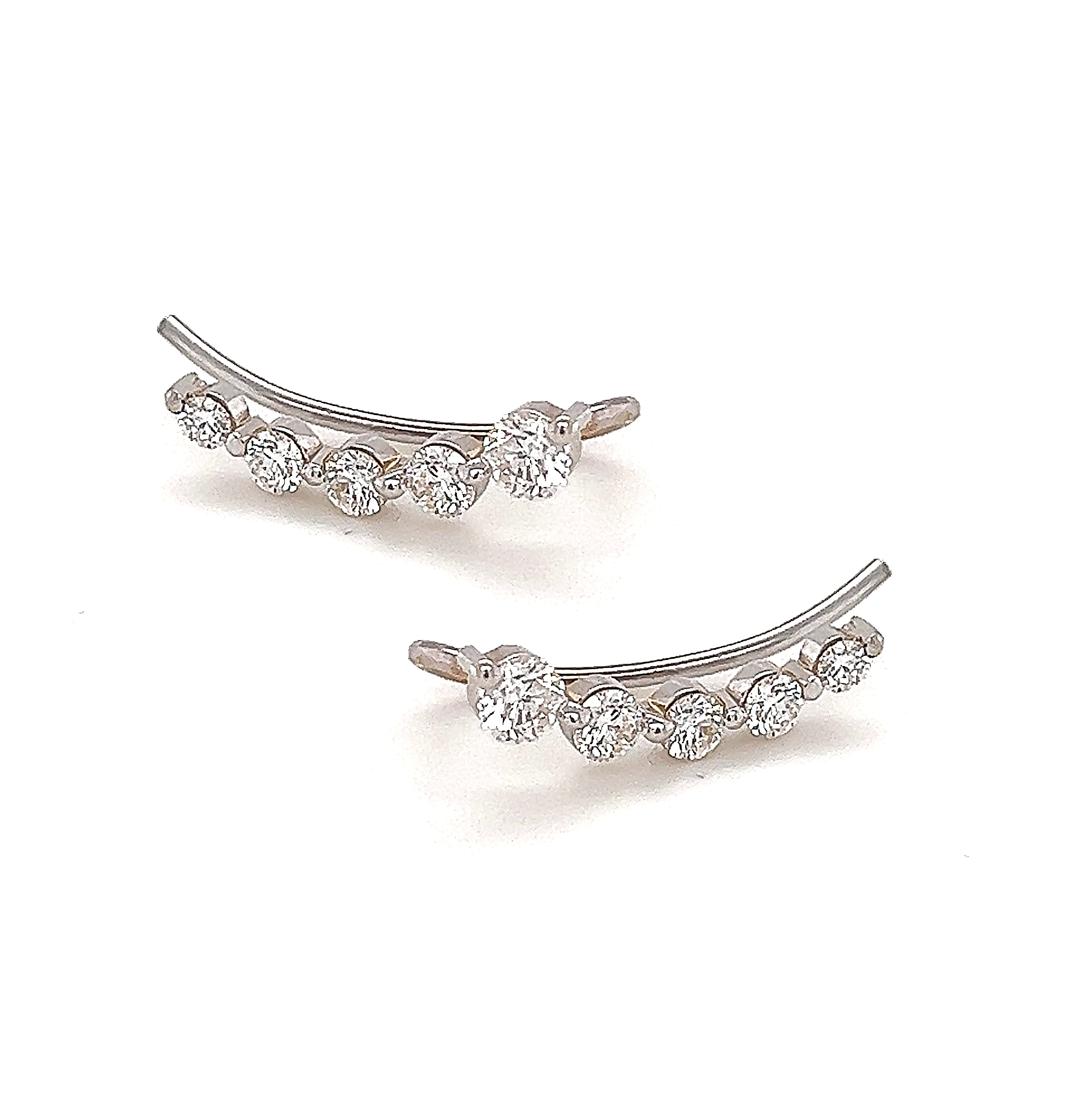 Tide are a pair of earrings with five brilliant cut white diamonds that elegantly ascend the ear. Each earring has a total carat weight of 0.47ct.