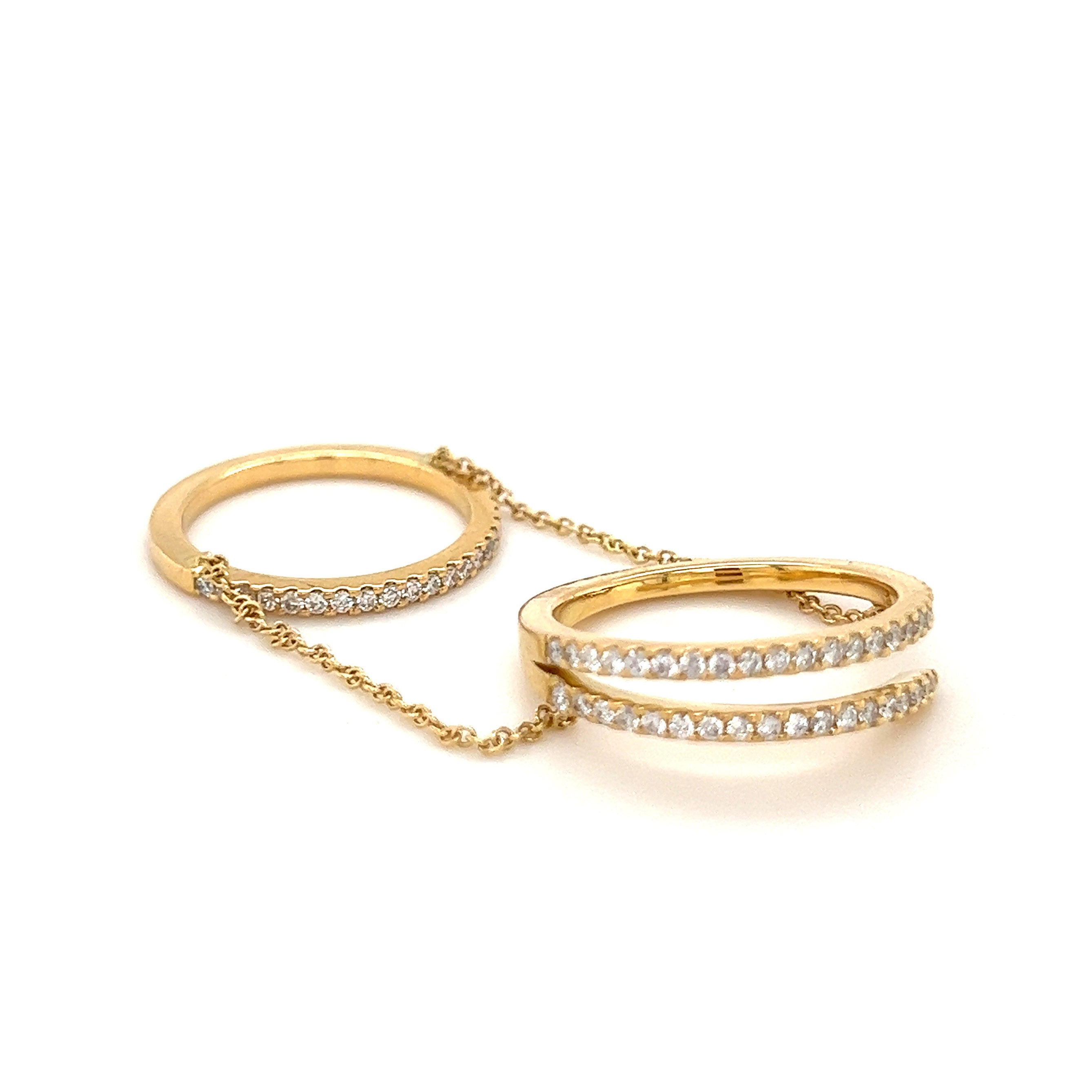 Twin is a handcrafted ring that spans over your whole finger embellished with a total of approximately 0.67ct of white brilliant cut diamonds. This ring is a statement piece on its own but also pairs beautifully with other eternity bands.