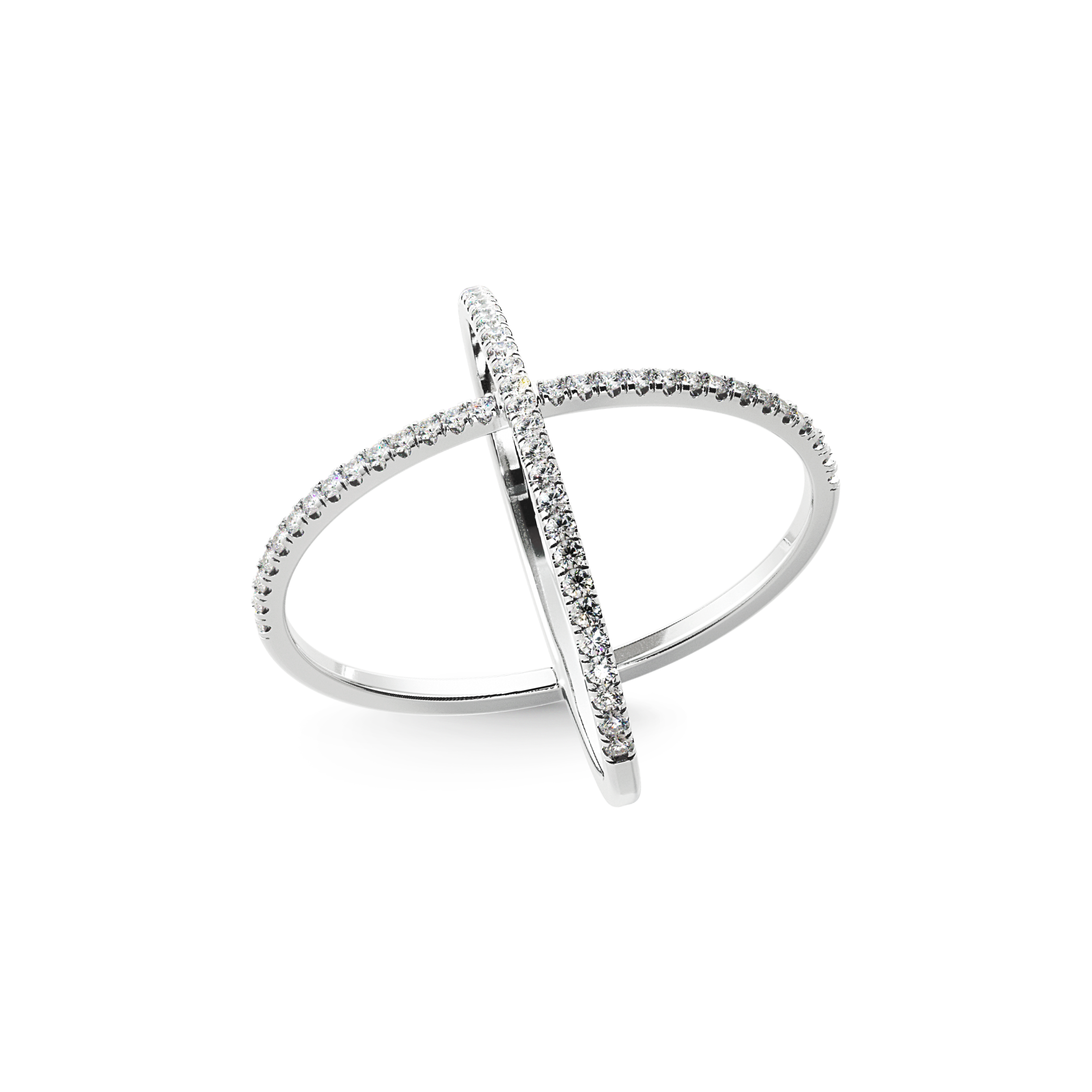 Xriss Xross Wide is a handcrafted ring showcasing 0.013ct brilliant cut white diamonds. This ring adds a playful touch to your jewelry collection and can be worn solo or paired with other rings.