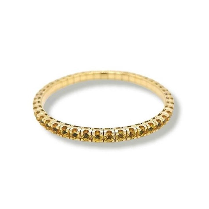 The Elastic Tennis Bracelet is a handcrafted piece featuring brilliant cut natural yellow sapphires, totaling a carat weight of approximately 16.15ct. This exquisite piece of jewelry is crafted to combine elegance with a comfortable fit thanks to its elasticity.