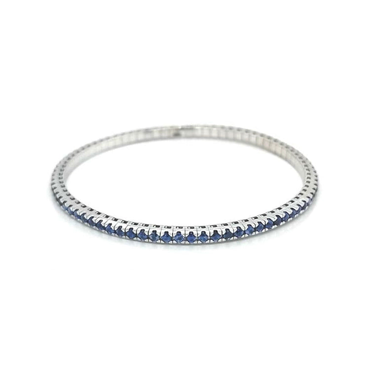 The Elastic Tennis Bracelet is a handcrafted piece featuring brilliant cut natural blue sapphires. This exquisite piece of jewelry is crafted to combine elegance with a comfortable fit thanks to its elasticity.