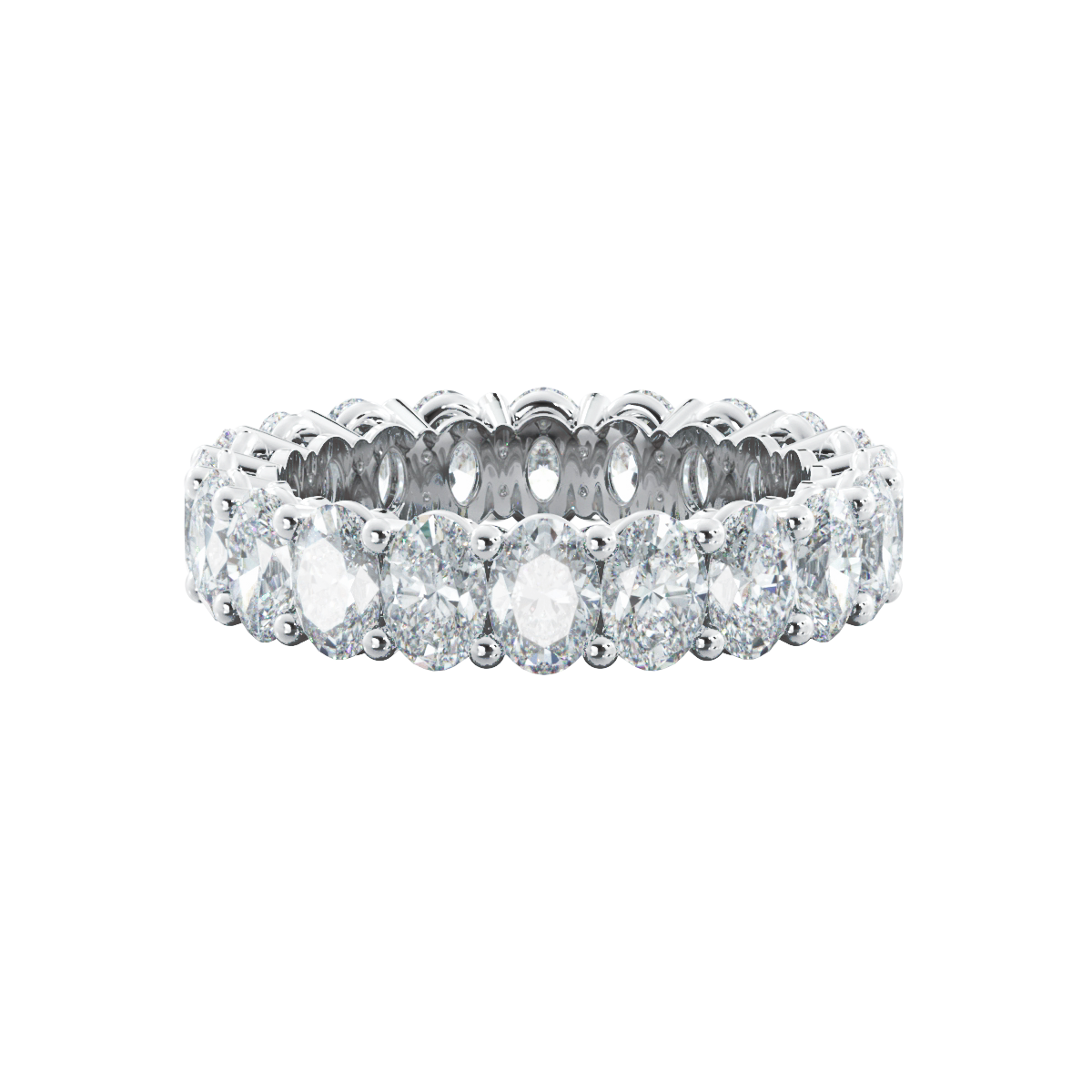 This handcrafted eternity ring showcases exquisite 0.10—0.30ct oval cut diamonds, making it a dazzling centerpiece on your finger. It’s perfect for wearing alone or stacking with other eternity bands.