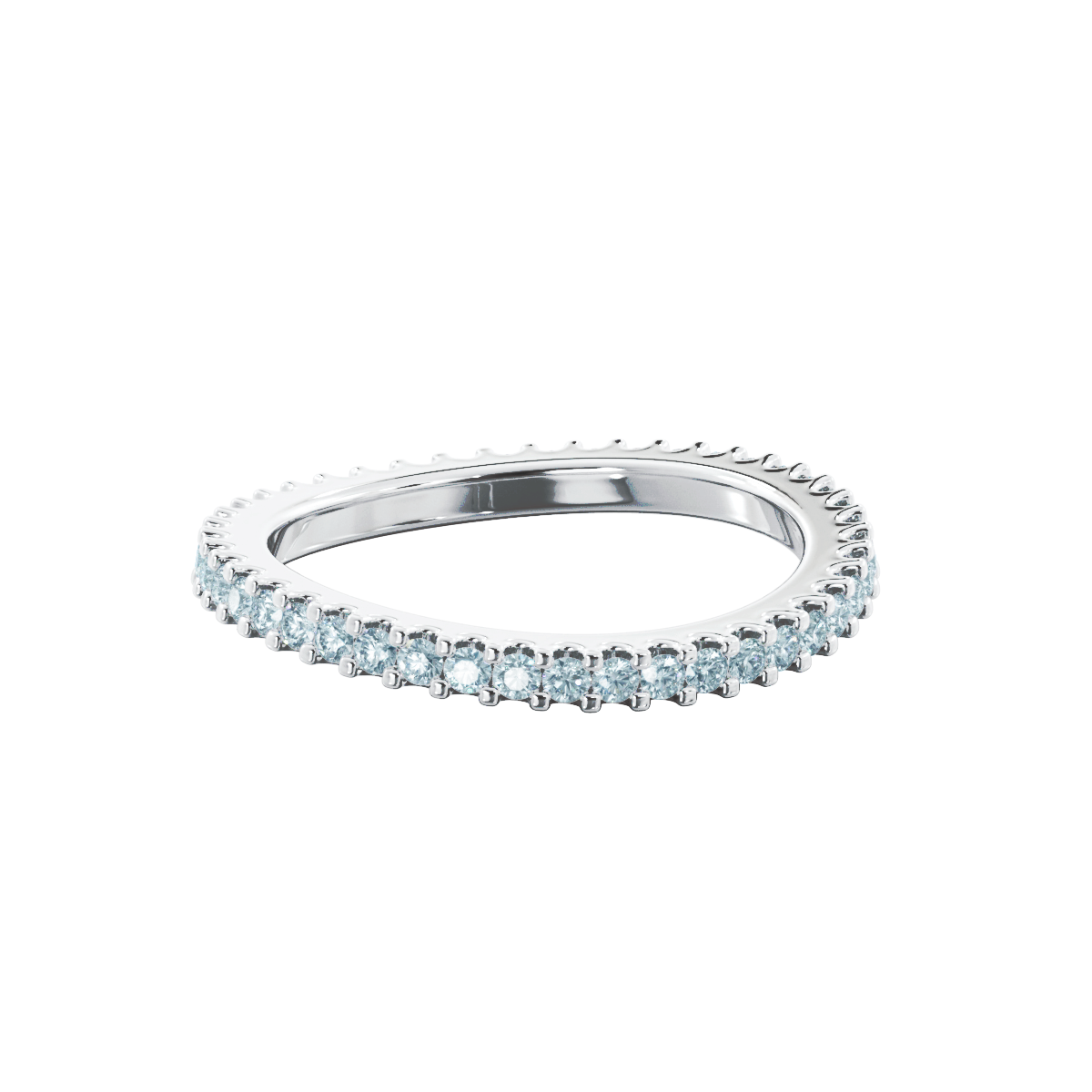 Eternal Love is a handcrafted eternity ring with 0.015 carat colored ice blue brilliant cut diamonds. Wear it solo or pair it seamlessly with any eternity band or solitaire ring.