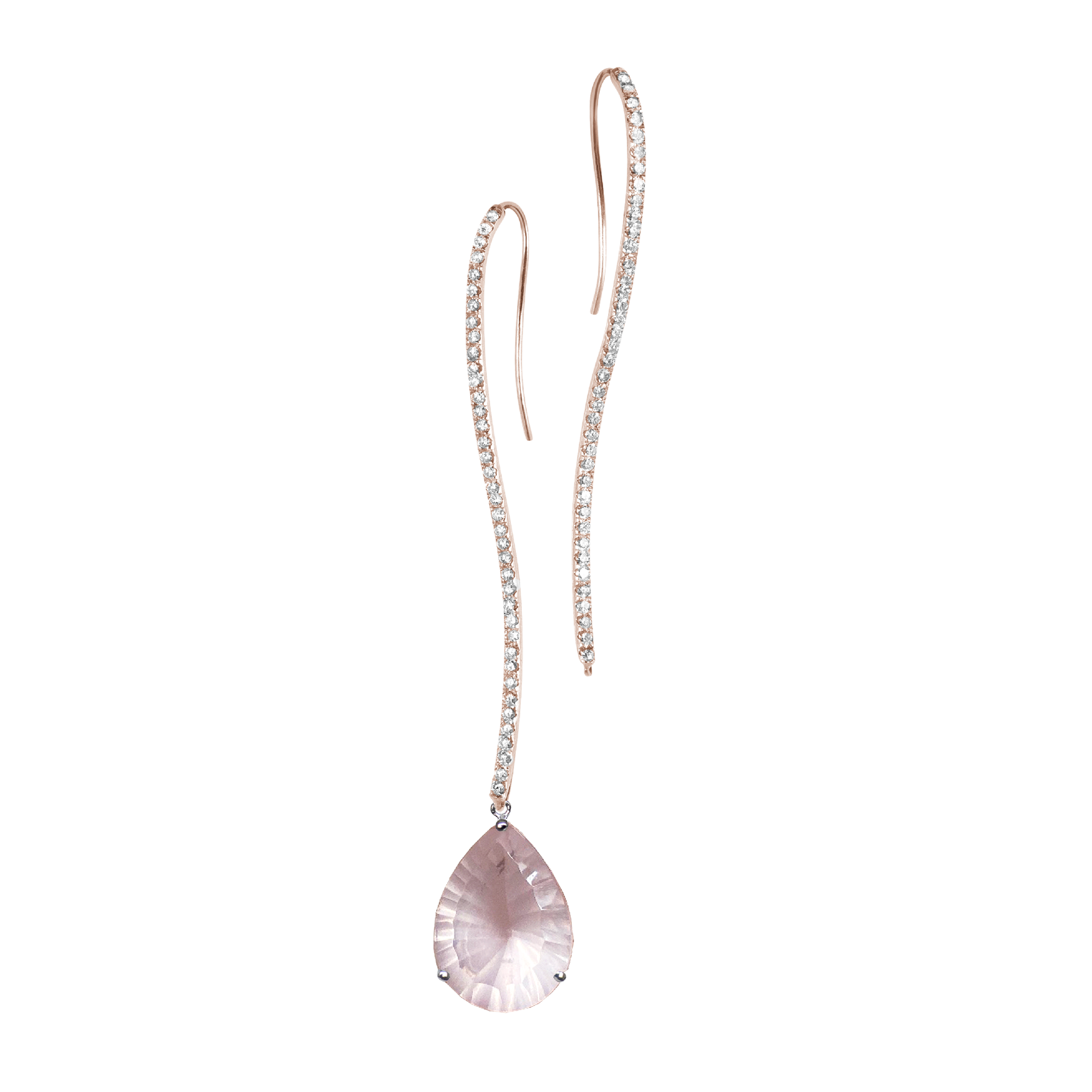 Curve is a pair of 70mm long beautiful earrings featuring white brilliant cut diamonds of 0.013 ct each. Available in 18k yellow, rose, and white gold.